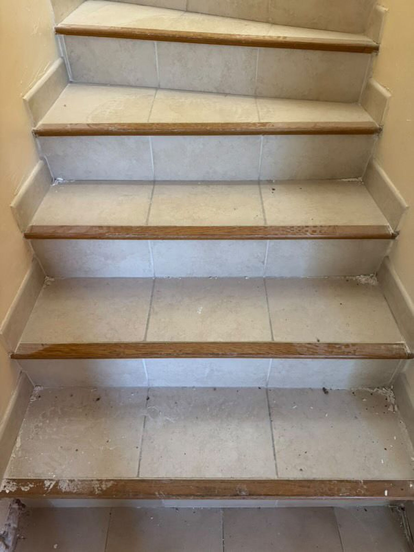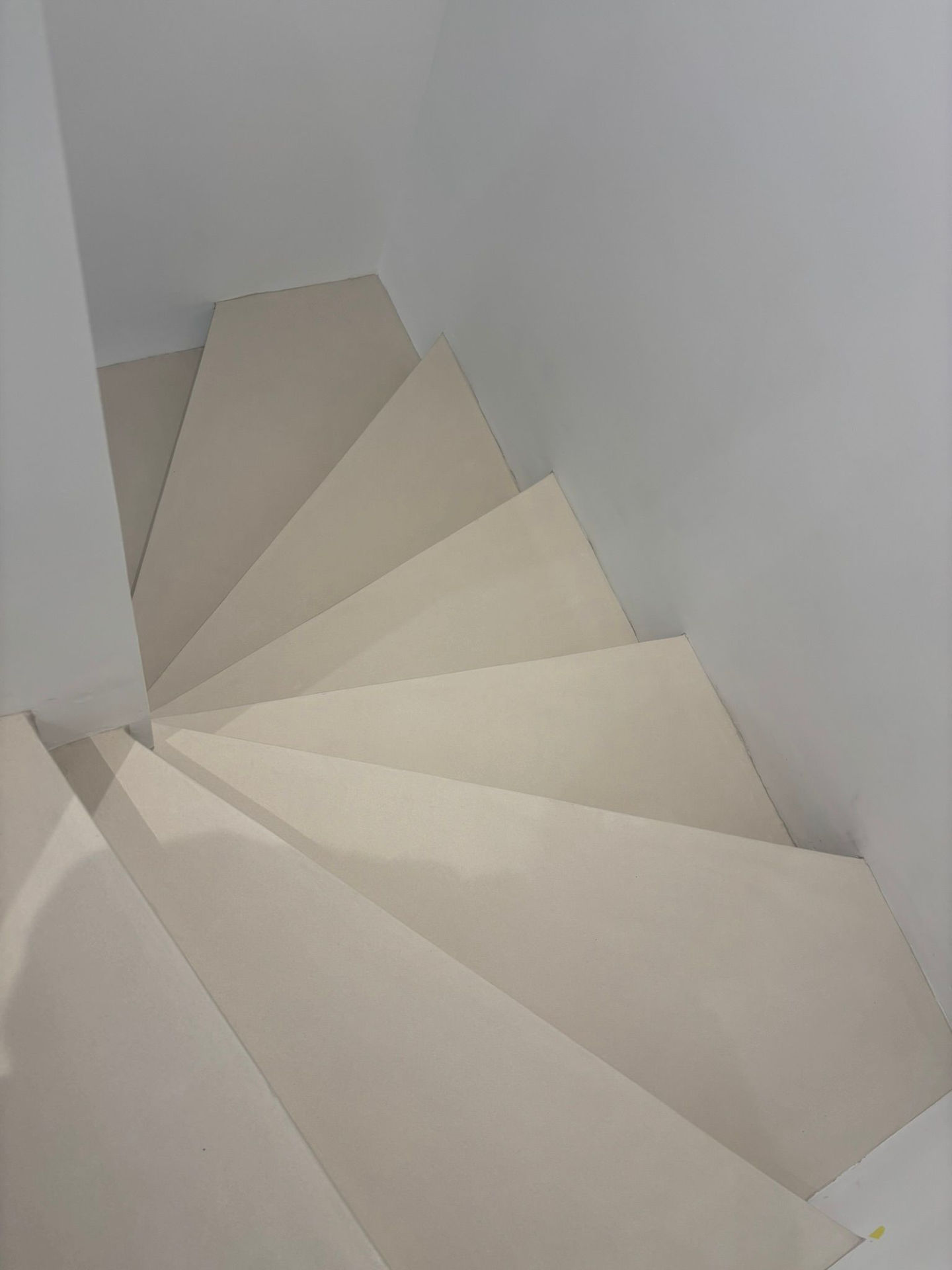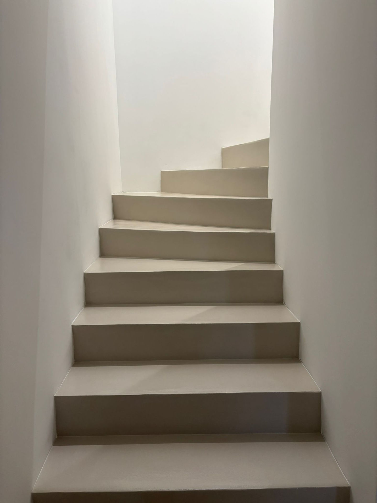 Dans un premier temps, l’ensemble du carrelage a été traité avec une couche époxy spécifique, indispensable pour assurer une liaison solide entre l’ancien support et le béton ciré. Les marches ont ensuite été vérifiées et redressées afin de garantir planéité et sécurité à l’usage. Chaque surface et chaque angle ont été contrôlés avec précision pour obtenir un résultat parfaitement uniforme d’une marche à l’autre.