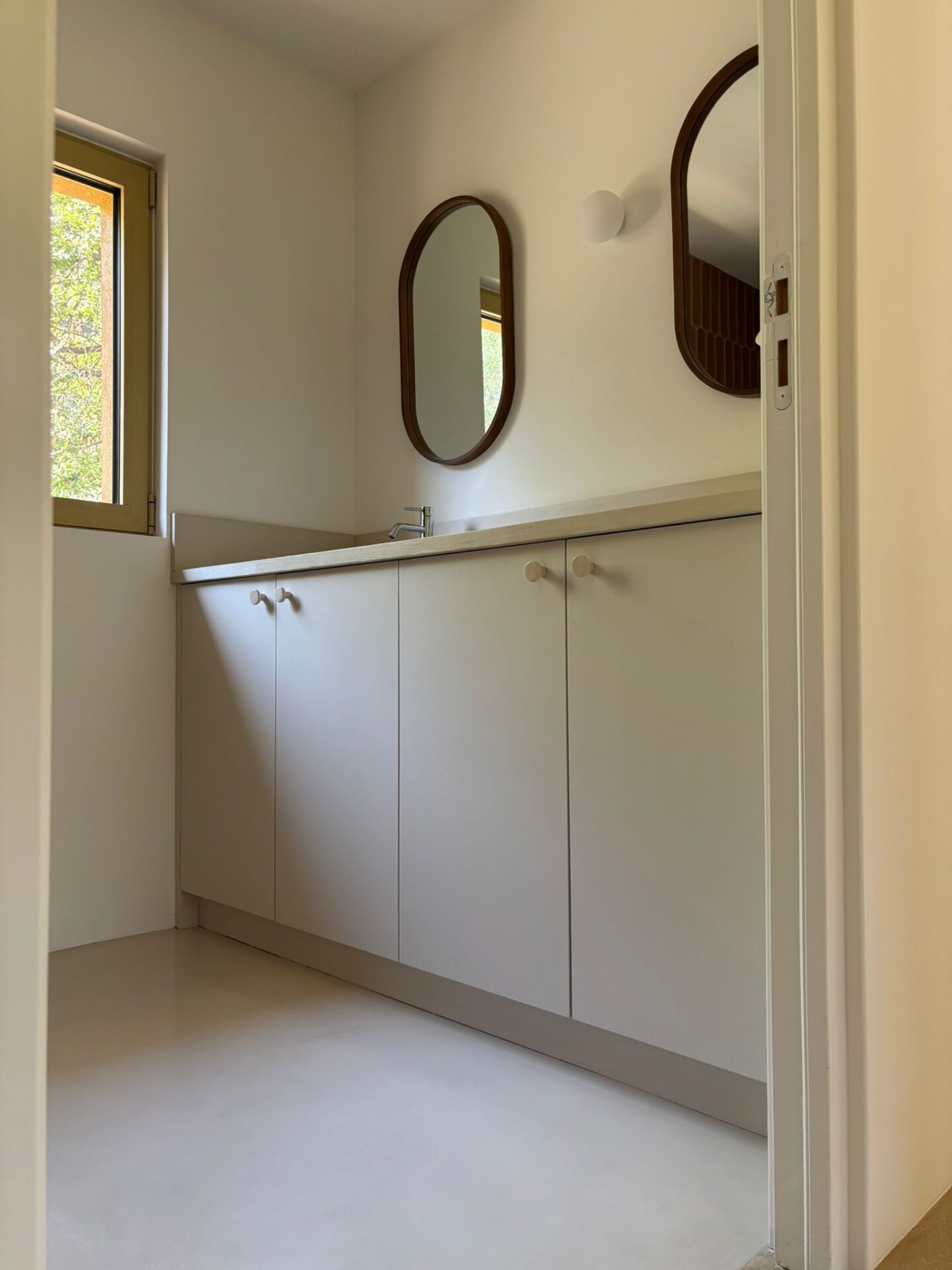En 2025, nous avons eu le plaisir d’intervenir à Tourrettes pour un projet de rénovation ambitieux : transformer deux salles de bain en véritables espaces de bien-être. Nos clients souhaitaient créer des atmosphères distinctes tout en conservant une cohérence esthétique dans leur intérieur. Le béton ciré s’est naturellement imposé comme le choix idéal pour allier élégance, durabilité et modernité.